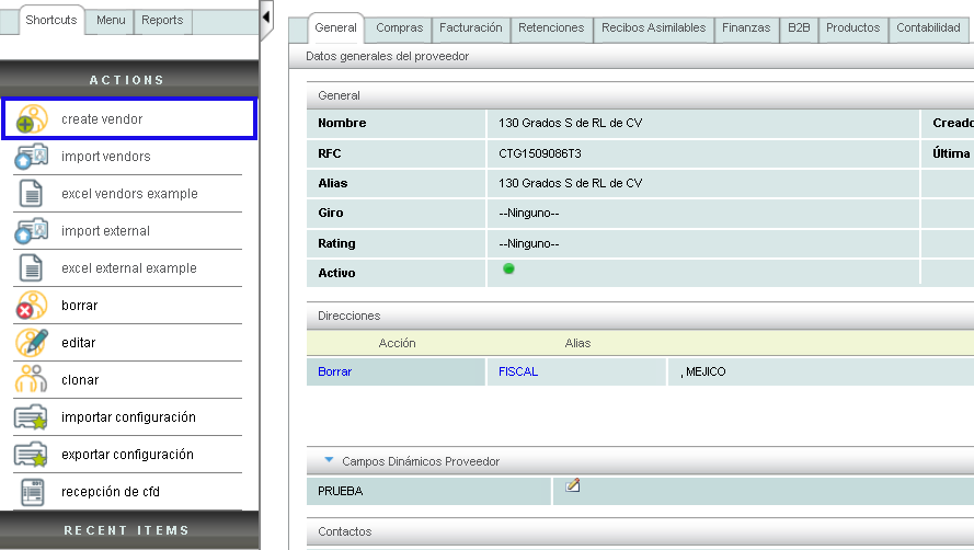 To perform this action, click on the option Create Vendor located in the menu Actions.